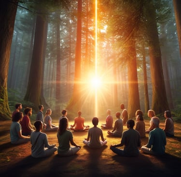 Normally includes an element of breathwork, sound healing, and chakra/cellular function alignment. The Anandreas Collective often come through with a channelled guided meditation.